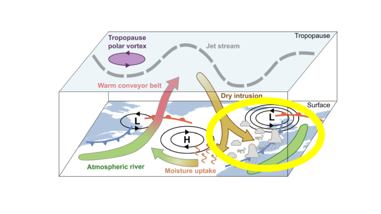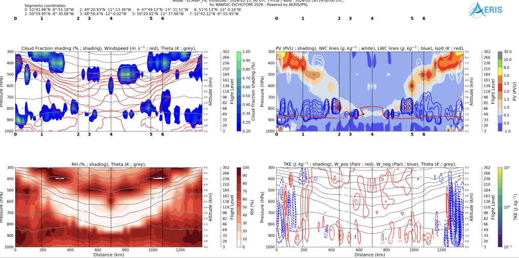 La campagne internationale de mesure NAWDIC (« North Atlantic Waveguide, Dry Intrusion, and Downstream Impact Campaign »), qui se déroule entre décembre 2025 et jusqu’au mois de mars 2026, a pour objectif d’approfondir la compréhension des processus dynamiques et physiques à l’origine des phénomènes météorologiques extrêmes en hiver et d’améliorer leur représentation dans les modèles de circulation atmosphérique.