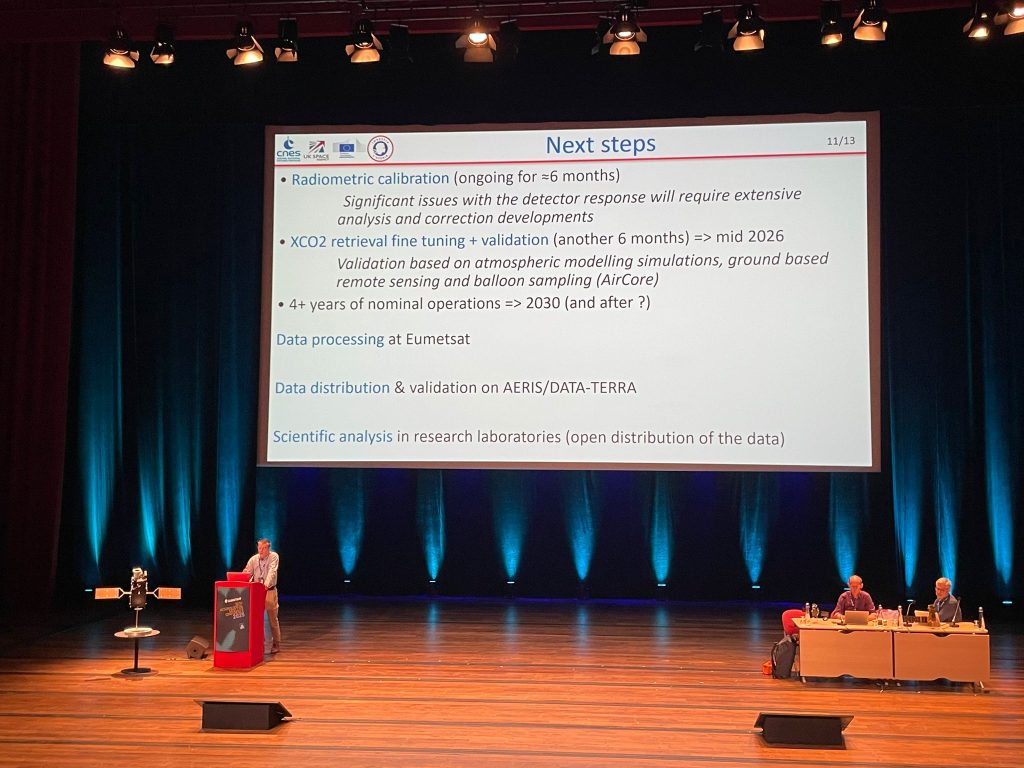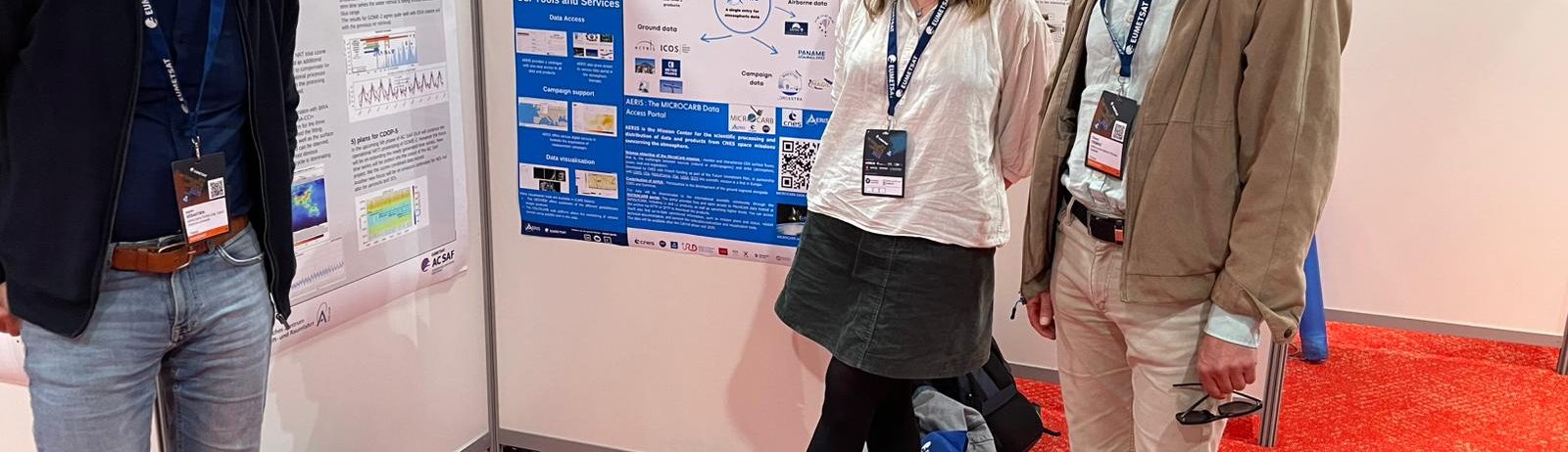 L’équipe de direction d’AERIS a ainsi pu présenter son poster dédié au portail de données de la mission MICROCARB. De plus, de nombreuses interventions ont mentionné AERIS et l’IR DATA TERRA pour souligner le travail actuel et futur pour la gestion et la distribution des données spatiales à la communauté scientifique. De nombreuses missions spatiales ont été lancés cet été (MICROCARB, MTG-IRS, METOP-SG A1) et de nombreuses sont à venir concernant l’observation de l’atmosphère (C3IEL, C2OMODO, MERLIN…) avec des instruments de plus en plus performants et un volume de données croissant ce qui lance de nombreux défis à AERIS. Cette conférence a également été l’occasion de découvrir les services du Cloud EUMETSAT : AERIS fournira un support aux scientifiques pour permettre d’utiliser les services proposés par le Cloud d’EUMETSAT.